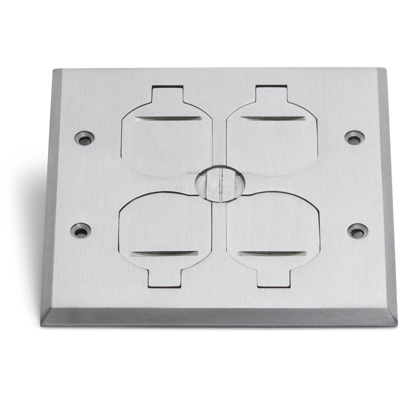The Lew Electric RRP-4-FPA is an aluminum cover only for the 1102-PB floor box. The cover features 4 flip lids that provide quick access to your plugs in the box.