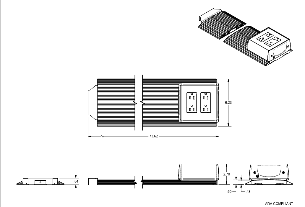 Perfect for modern offices, collaborative workspaces, conference rooms, and classrooms, the Smart-Way Stick delivers power anywhere on the floor quickly and safely while maintaining a low, ADA-compliant profile. Its durable, sleek aluminum construction blends seamlessly with contemporary interiors while reducing cord clutter and tripping hazards.