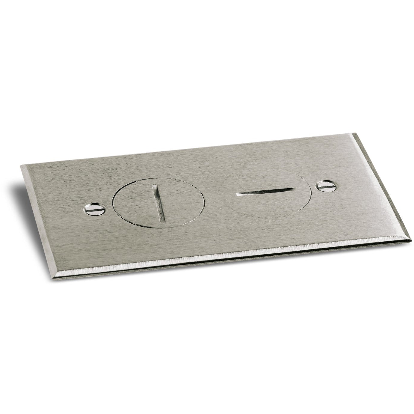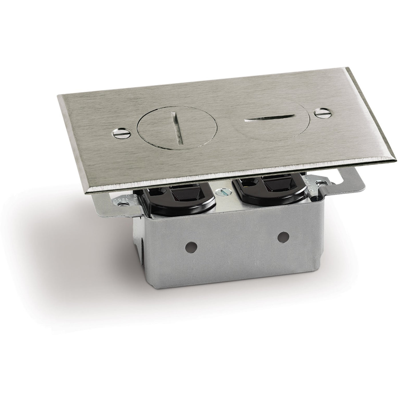The Lew Electric RRP-2-NS is a recessed floor plate with a nickel silver cover. The back box is not included, use with an approved 2" x 3" box with a depth of 3.5". Inside the floor box is a single 15A duplex outlet, the plugs are tamper proof. The sleeve in the box is adjustable up to 3/4" to accommodate any floor making installation a snap, screws are included to attach the plate to the receptacle box. The box may be attached directly to the floor or routed 3/4" into a finished floor. The box features two water tight close up screw plugs, there is also a durable 1/16" neoprene rubber gasket that goes between the receptacles and plate. The receptacle is UL listed and meets heavy duty requirements for display receptacles. This floor box is a simple and economical solution to provide your power in a small and attractive plate.