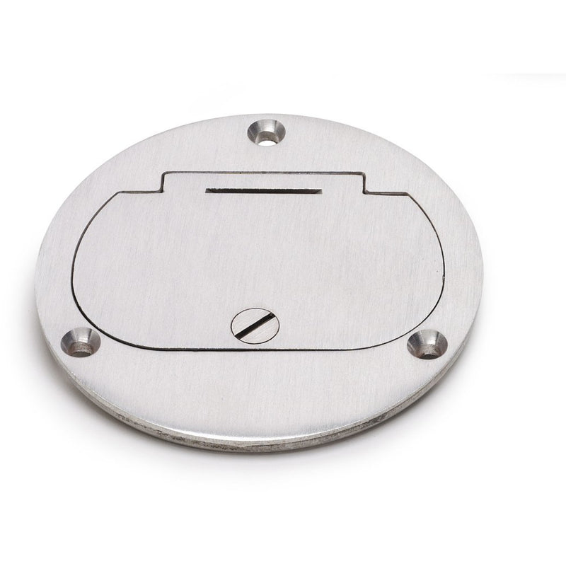The Lew Electric DFB-1-GFI-A is an aluminum cover only for the 32 series of round floor boxes. The cover features a single hinged lid to gain access to the decora outlet opening inside of the floor box. The cover includes the mounting plate, gasket, and plate screws.