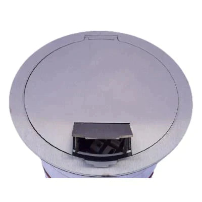 - 4" Round Poke Thru Core Drill Flush Box, Recessed, 2 Power, 6 Keystones - Stainless
