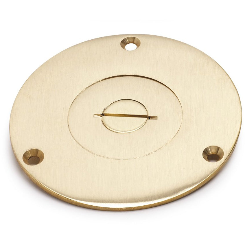 Flush Mounted Round Floor Box, One RJ11 Phone, Screw Plugs, Brass