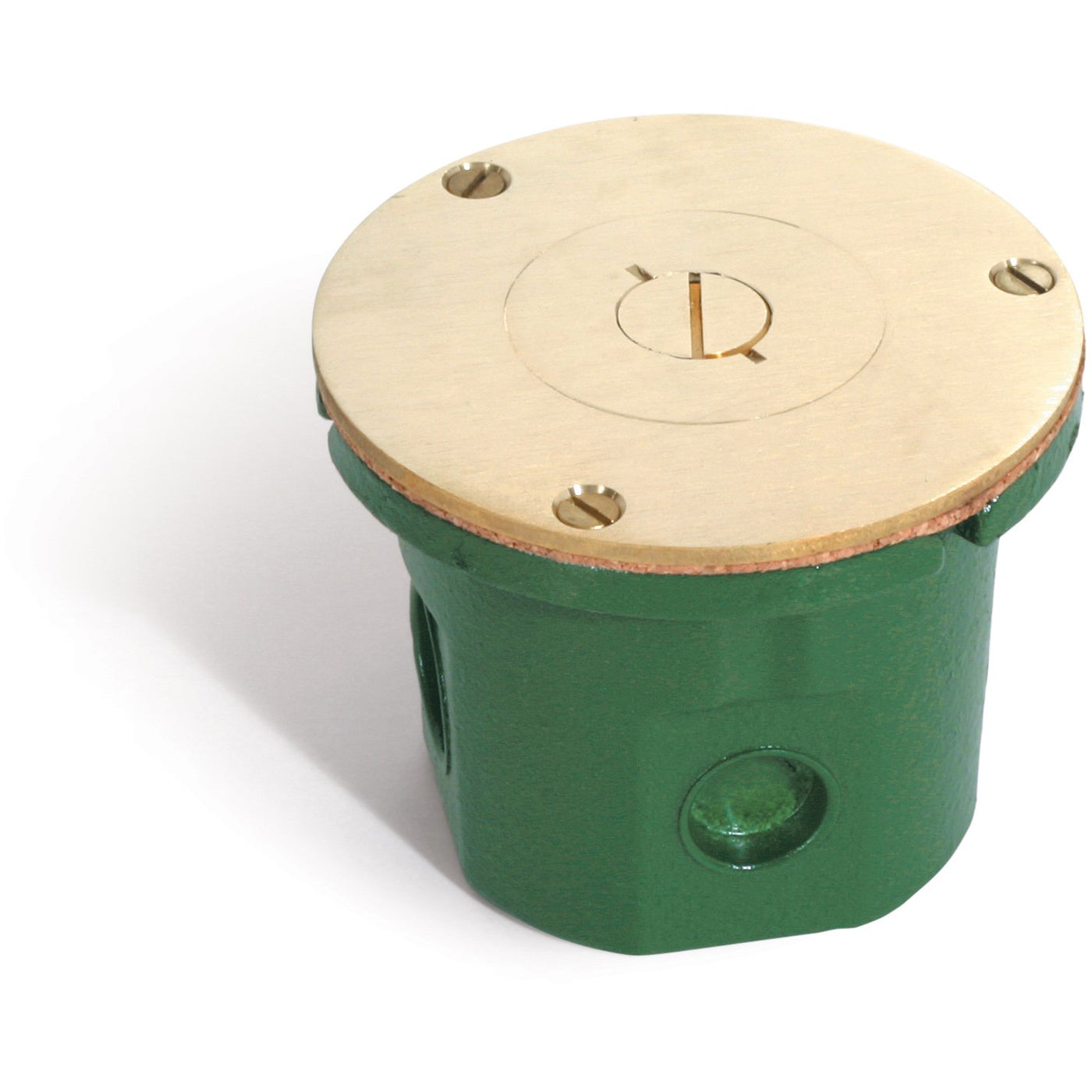 The Lew Electric 812-DFB-W/524 is a cast iron floor box with round brass cover. The box was meant to be installed flush with your floor creating a level surface for a nice clean look. Inside the floor box is a single RJ11 phone jack, the Lew Electric 40201-001 is included with the box. You access the phone jack through either the 1/2" or 2" screw plugs in the cover.