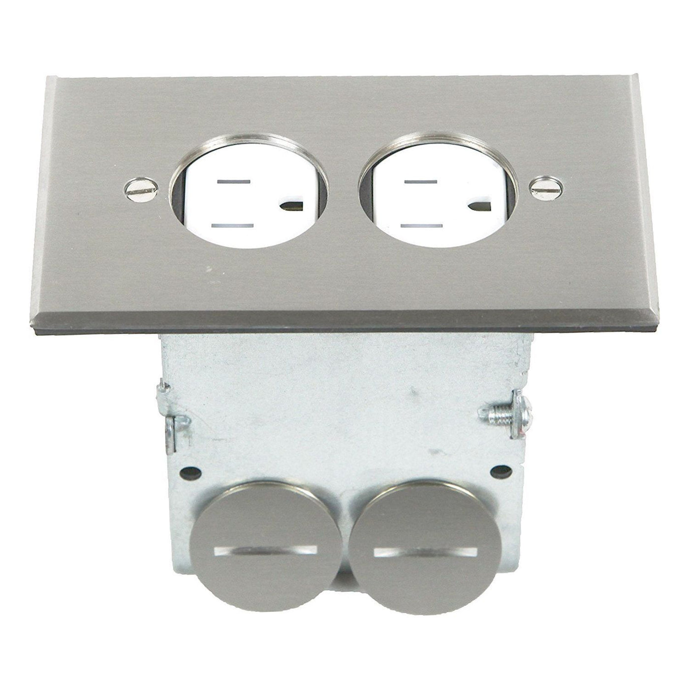 Enerlites 975506-S One-Gang Floor Box 20A Kit with Screw Plug Cover, Stainless