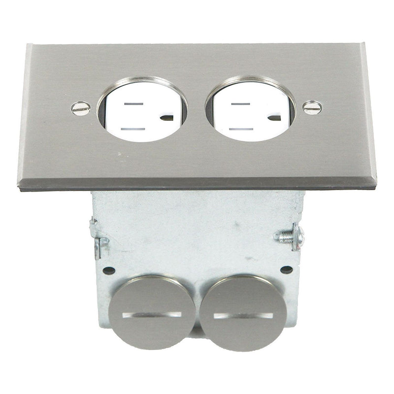The Enerlites 975506-S is a 1-gang floor box kit that includes the back box, 20A TR and WR outlet, stainless steel cover plate, metal and foam gaskets, and rubber gasket. The cover features dual screw plugs that provide quick and easy access to the outlet. The box can be installed in carpet, tile, stone, laminate, concrete, and vinyl floors. Nine knockouts make wiring up to the outlet with #12-10 AWG stranded or solid copper wire easy. The corrosion-resistant hardware ensures a long life span and reliable performance.