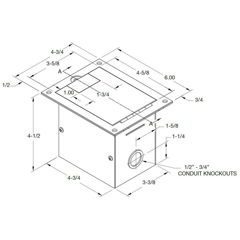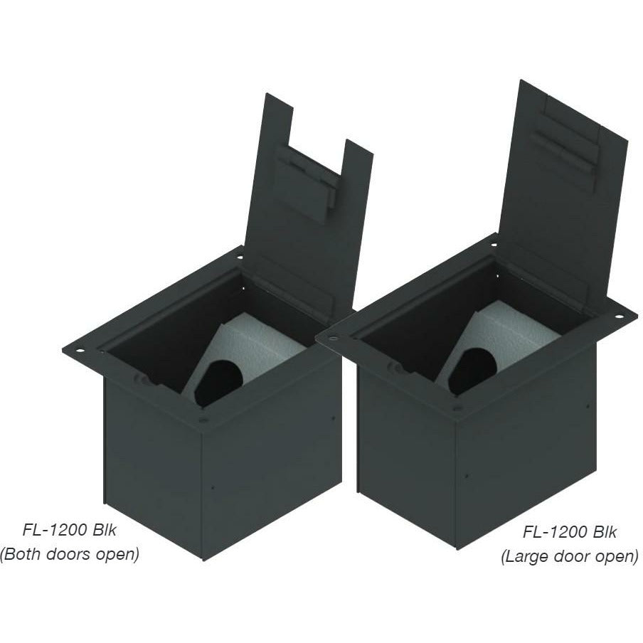 FL-1200 Raised Access Floor Box, Single Gang, Hinged Lid, Black