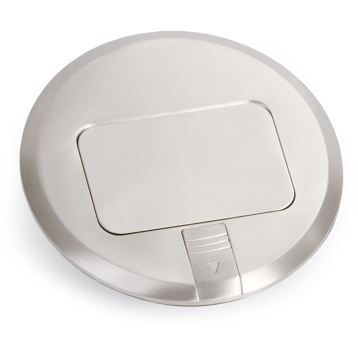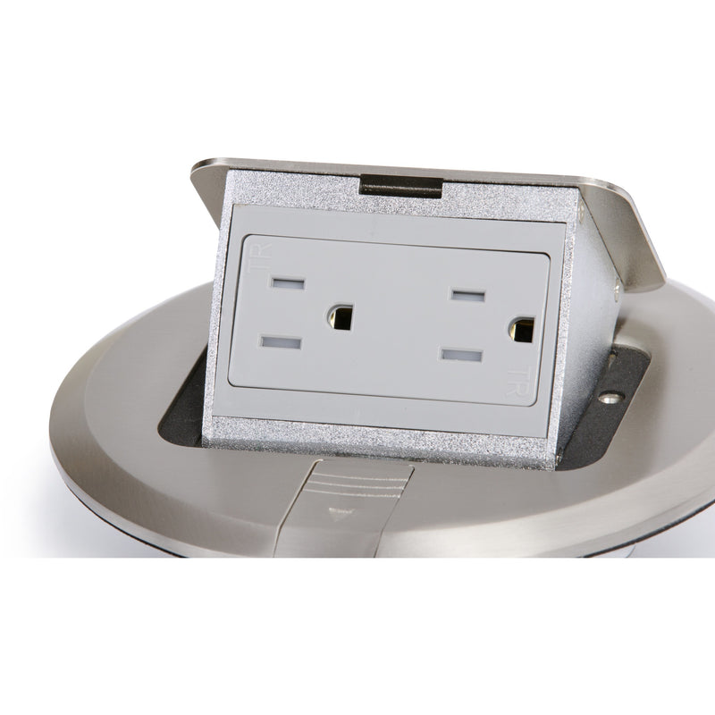 Pop Up Round Floor Box w/ 15A Outlet Wood or Concrete - Stainless Steel