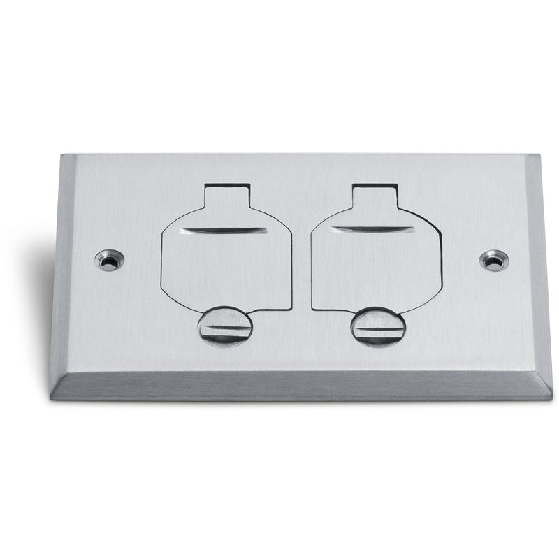 The Lew Electric RRP-2-FPA is an aluminum cover only for the 1101-PB floor box. The cover features 2 flip lids that provide quick and easy access to your outlets in the box.