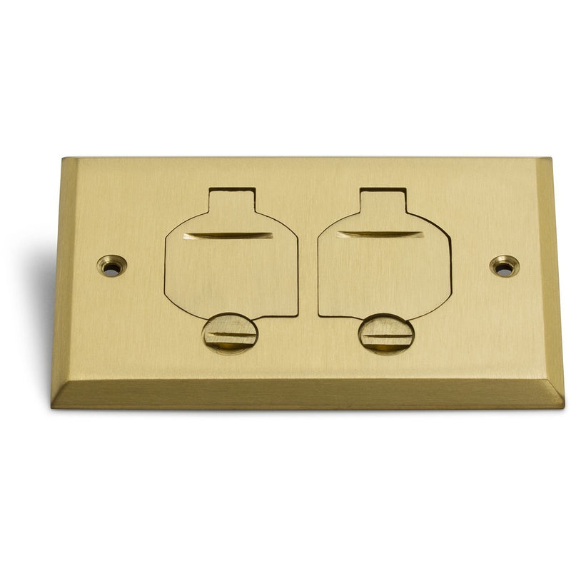 The Lew Electric RRP-2-FPB is a brass cover only for the 1101-PB floor box. The cover features 2 flip lids that provide quick and easy access to your outlets in the box.