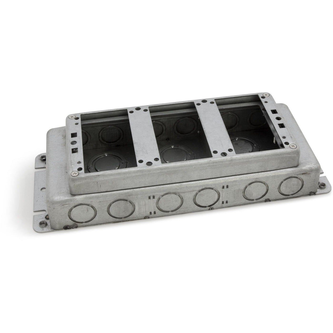 Three Gang, Stamped Steel, Shallow for 2.5" to 3" Concrete, Floor Box