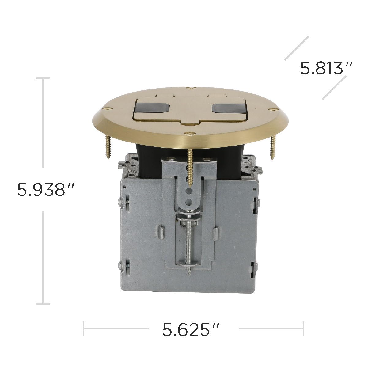 Raco 6239ACBP Recessed Receptacle Round Floor Box, USB-A/C, Brass