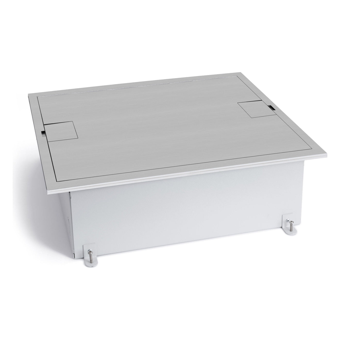 Recessed Floor Box for Concrete or Wood, Hinged Lid, 12 Decora, Stainless Steel