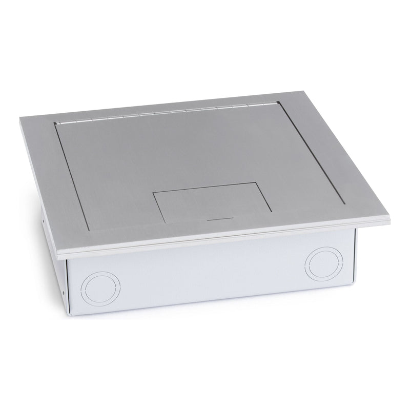 Recessed Floor Box for Concrete or Wood, Hinged Lid, 2 Decora, Stainless Steel