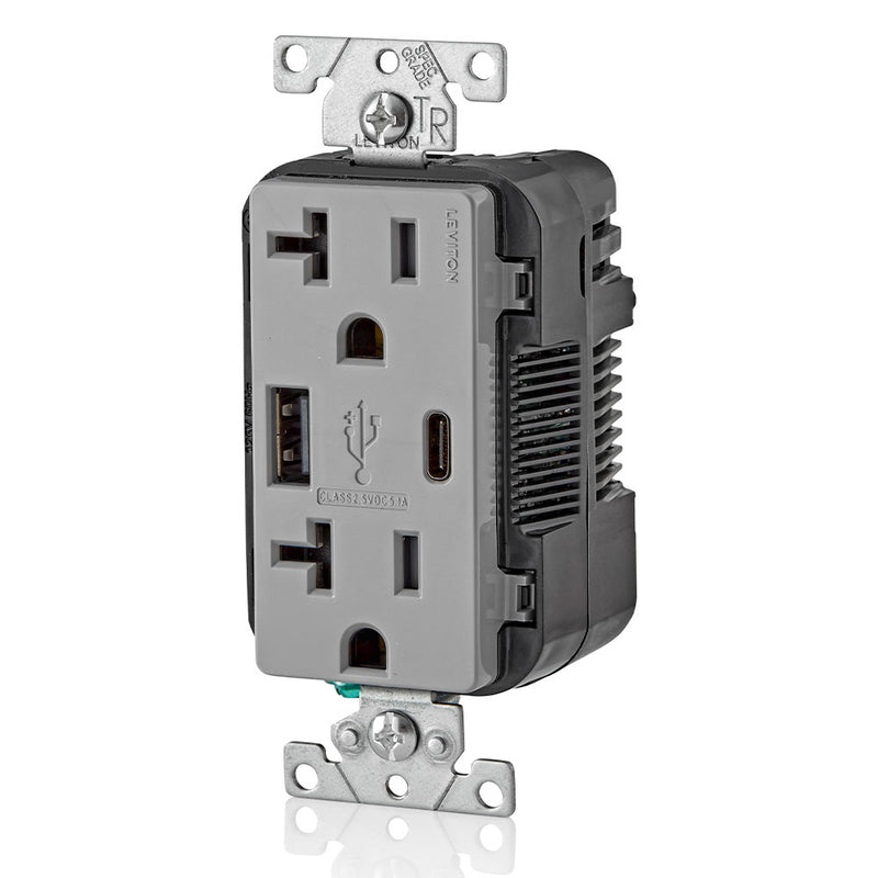 USB-A and USB-C Charging Ports Wall Outlet, 5.1A, 20A, TR - Gray